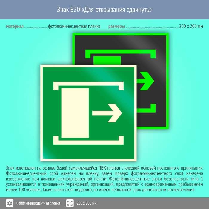 Знак E20 «Для открывания сдвинуть» (фотолюминесцентная пленка, 200х200 мм) в Курске купить