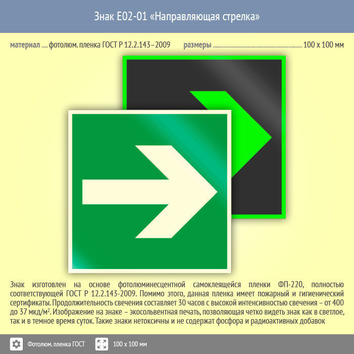 Знак E02-01 «Направляющая стрелка» (фотолюминесцентная пленка ГОСТ 34428-2018, 100х100 мм) в Курске купить