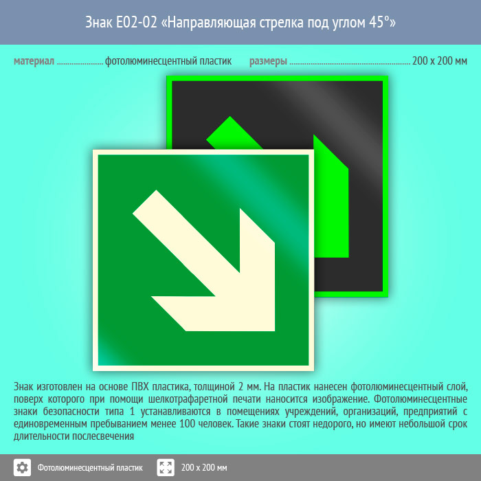 Знак E02-02 «Направляющая стрелка под углом 45°» (фотолюминесцентный пластик, 200х200 мм) в Курске купить