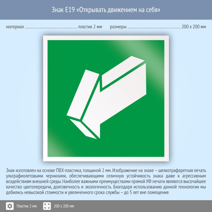 Знак E19 «Открывать движением на себя» (пластик, 200х200 мм) в Курске купить