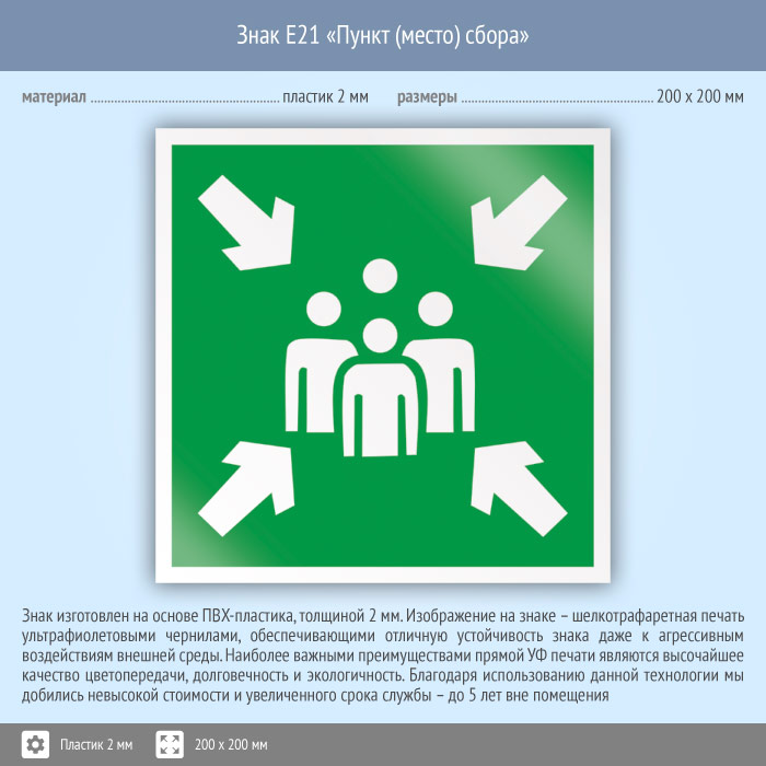 Знак E21 «Пункт (место) сбора» (пластик, 200х200 мм) в Курске купить