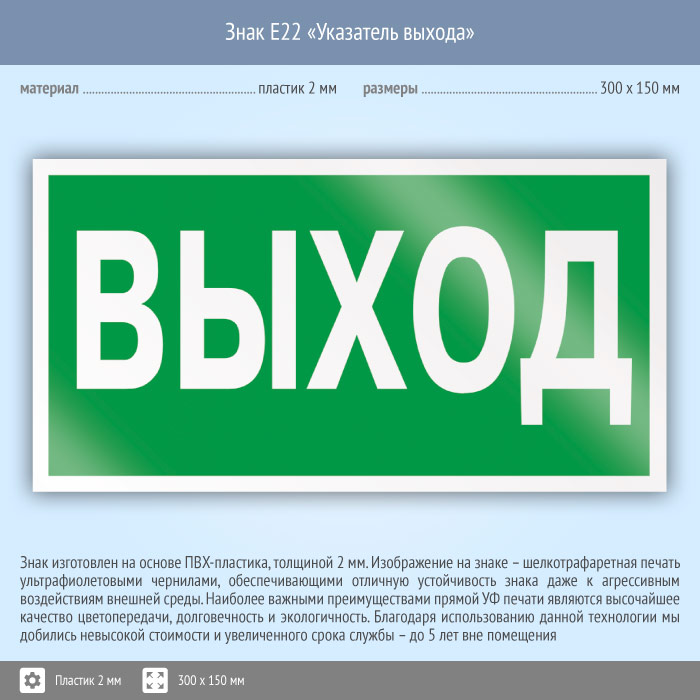 Знак E22 «Указатель выхода» (пластик, 300х150 мм) в Курске купить