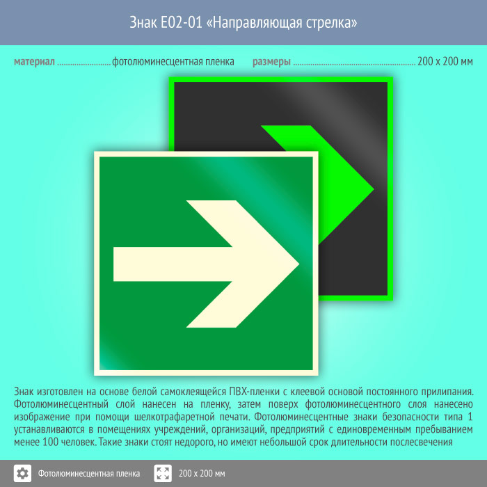 Знак E02-01 «Направляющая стрелка» (фотолюминесцентная пленка, 200х200 мм) в Курске купить