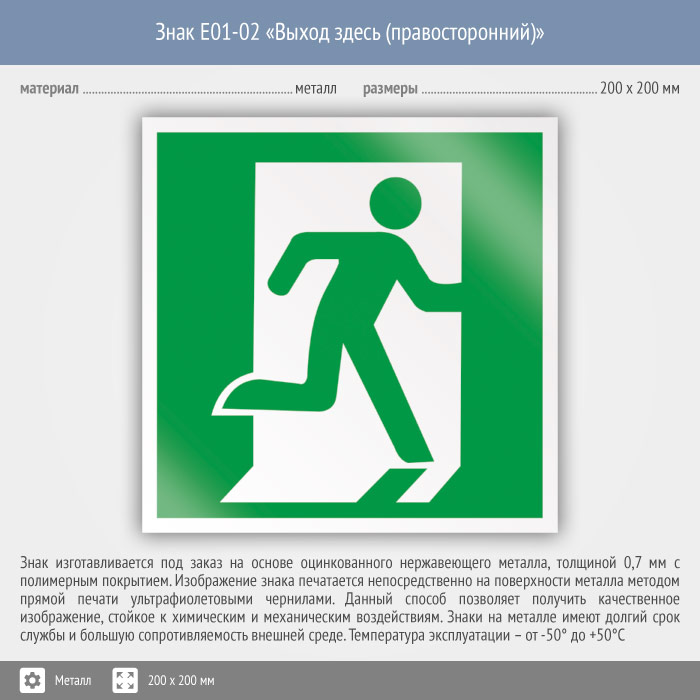 Знак E01-02 «Выход здесь (правосторонний)» (металл, 200х200 мм) в Курске купить