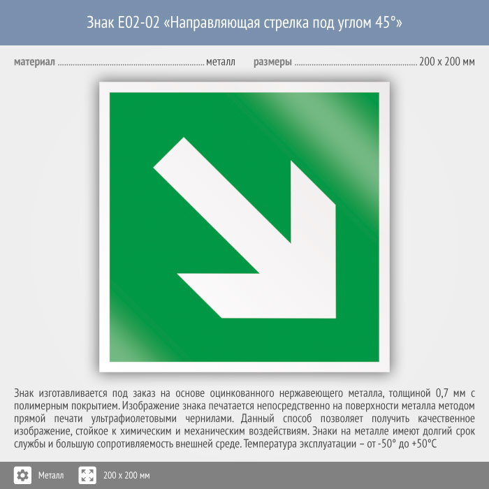Знак E02-02 «Направляющая стрелка под углом 45°» (металл, 200х200 мм) в Курске купить