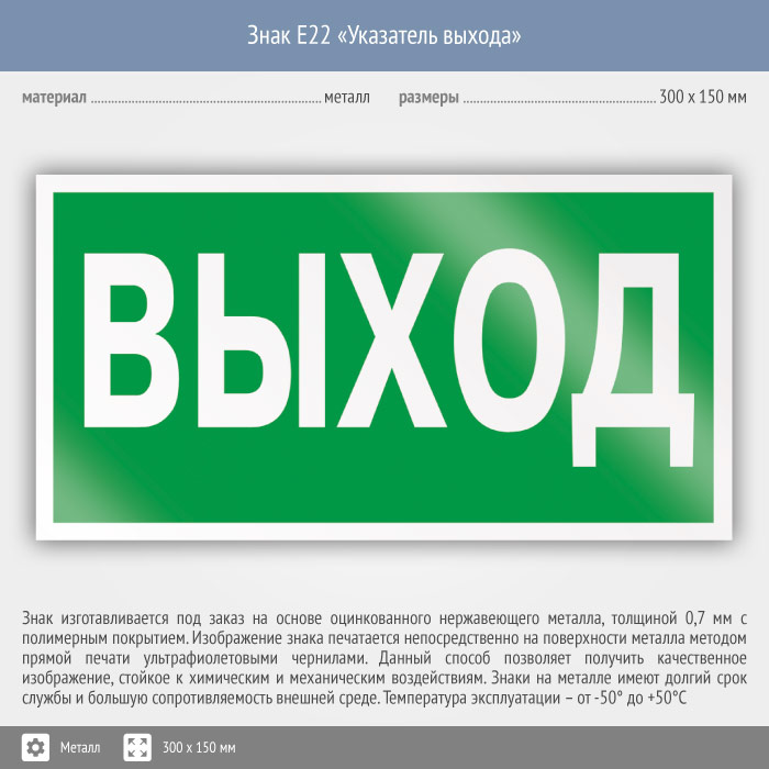 Знак E22 «Указатель выхода» (металл, 300х150 мм) в Курске купить