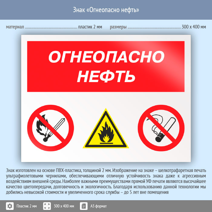 Знак «Огнеопасно нефть», КЗ-31 (пластик, 400х300 мм) в Курске купить
