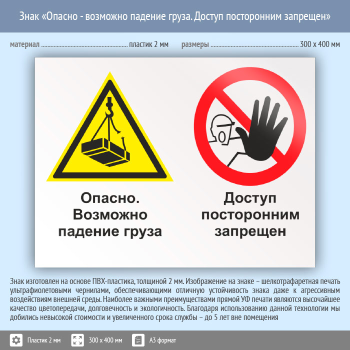 Знак «Опасно - возможно падение груза. Доступ посторонним запрещен», КЗ-33 (пластик, 400х300 мм) в Курске купить
