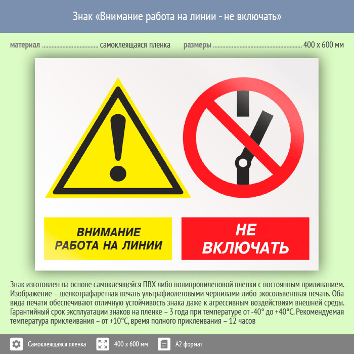 Знак «Внимание работа на линии - не включать», КЗ-16 (пленка, 600х400 мм) в Курске купить