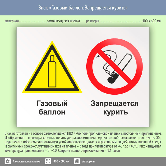 Знак «Газовый баллон. Запрещается курить», КЗ-18 (пленка, 600х400 мм) в Курске купить