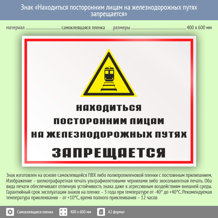 Знак «Находиться посторонним лицам на железнодорожных путях запрещается», КЗ-24 (пленка, 600х400 мм) в Курске купить
