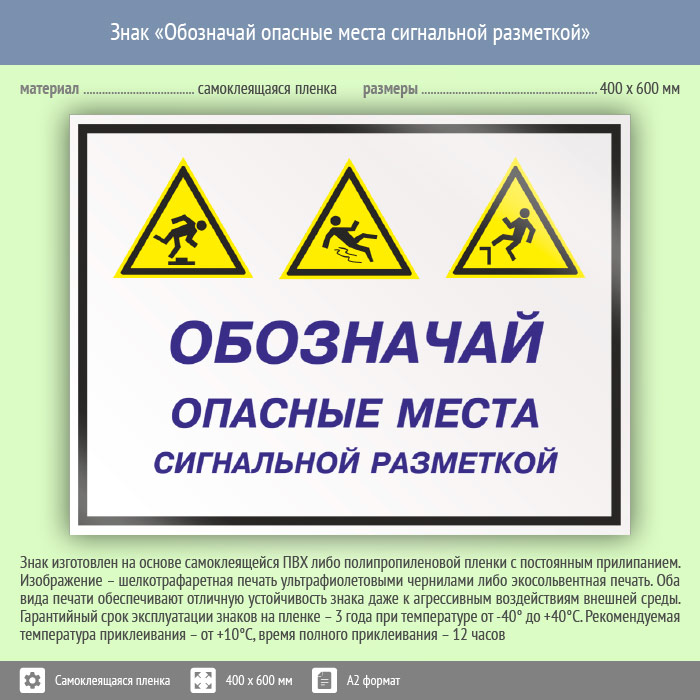 Знак «Обозначай опасные места сигнальной разметкой», КЗ-30 (пленка, 600х400 мм) в Курске купить