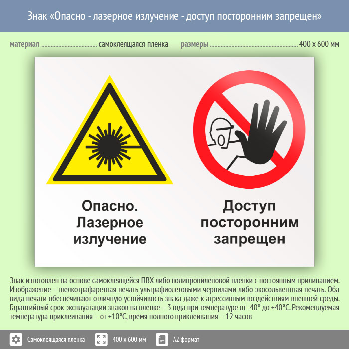 Знак «Опасно - лазерное излучение - доступ посторонним запрещен», КЗ-37 (пленка, 600х400 мм) в Курске купить