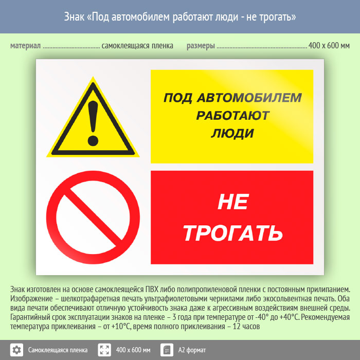 Знак «Под автомобилем работают люди - не трогать», КЗ-66 (пленка, 600х400 мм) в Курске купить