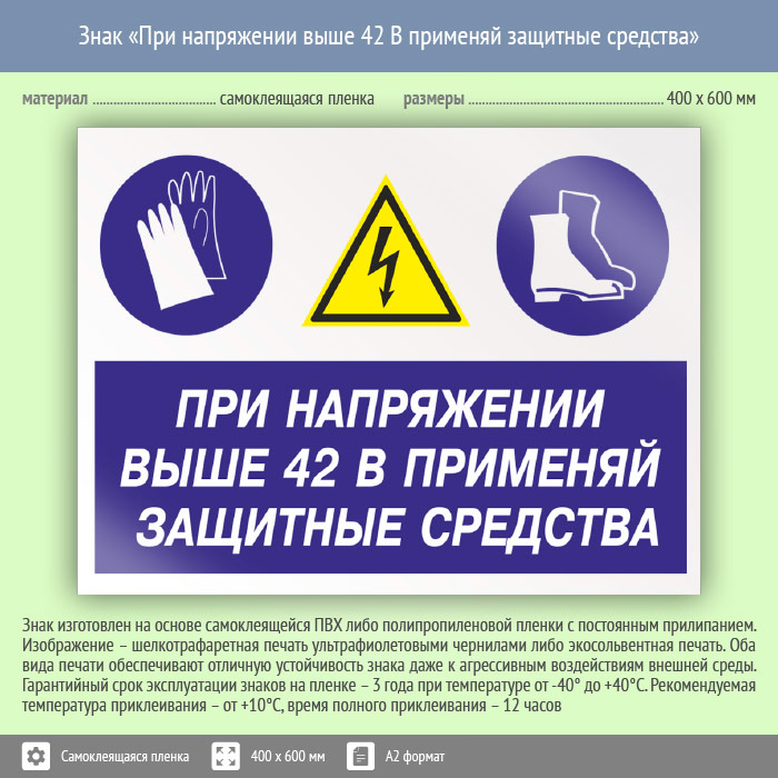 Знак «При напряжении выше 42 В применяй защитные средства», КЗ-72 (пленка, 600х400 мм) в Курске купить