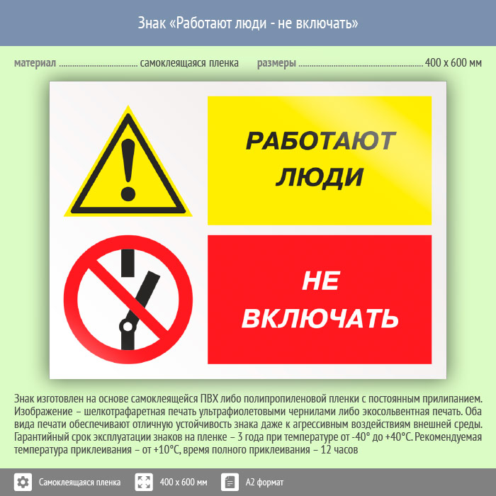 Знак «Работают люди - не включать», КЗ-83 (пленка, 600х400 мм) в Курске купить