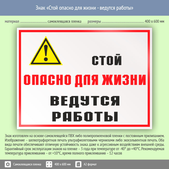 Знак «Стой опасно для жизни - ведутся работы», КЗ-86 (пленка, 600х400 мм) в Курске купить