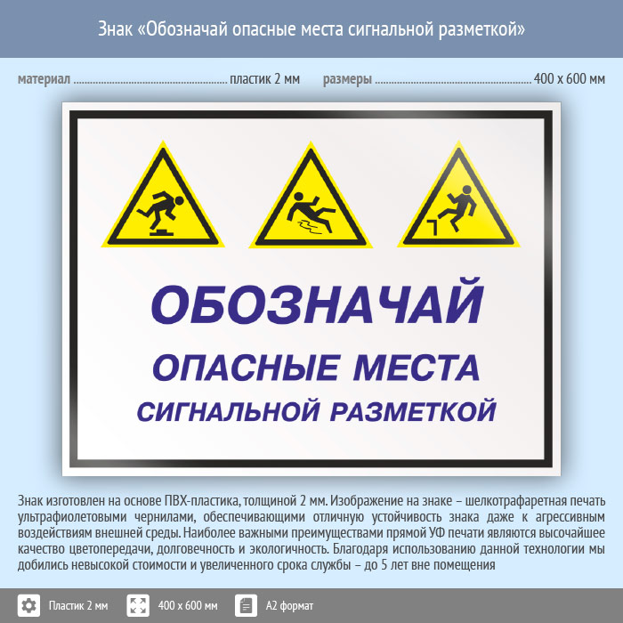 Знак «Обозначай опасные места сигнальной разметкой», КЗ-30 (пластик, 600х400 мм) в Курске купить
