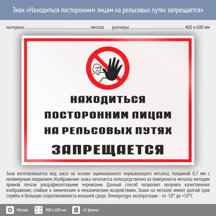 Знак «Находиться посторонним лицам на рельсовых путях запрещается», КЗ-25 (металл, 600х400 мм) в Курске купить