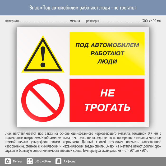 Знак «Под автомобилем работают люди - не трогать», КЗ-66 (металл, 400х300 мм) в Курске купить