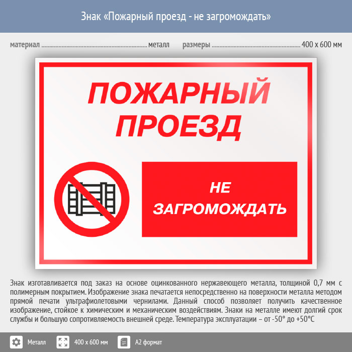 Знак «Пожарный проезд - не загромождать», КЗ-67 (металл, 600х400 мм) в Курске купить
