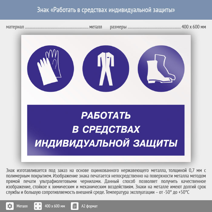 Знак «Работать в средствах индивидуальной защиты», КЗ-81 (металл, 600х400 мм) в Курске купить
