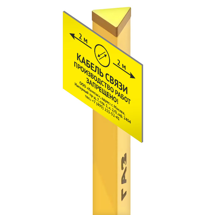 Столбик треугольный желтый h=1800 мм (сторона 100 мм) в Курске купить