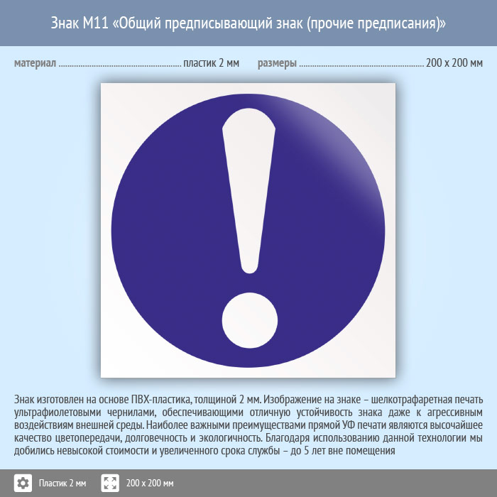 Знак M11 «Общий предписывающий знак (прочие предписания)» (пластик, 200х200 мм) в Курске купить