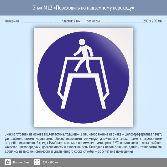 Знак M12 «Переходить по надземному переходу» (пластик, 200х200 мм) в Курске купить