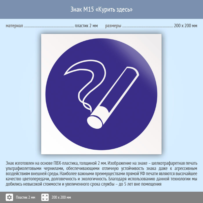 Знак M15 «Курить здесь» (исключен) (пластик, 200х200 мм) в Курске купить