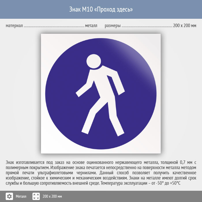 Знак M10 «Проход здесь» (металл, 200х200 мм) в Курске купить