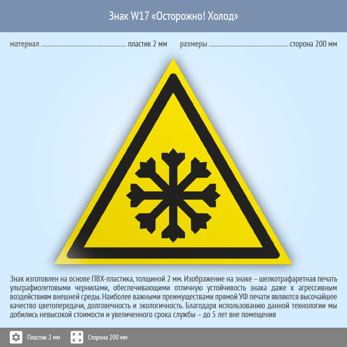 Знак W17 «Осторожно! холод» (пластик, сторона 200 мм) в Курске купить