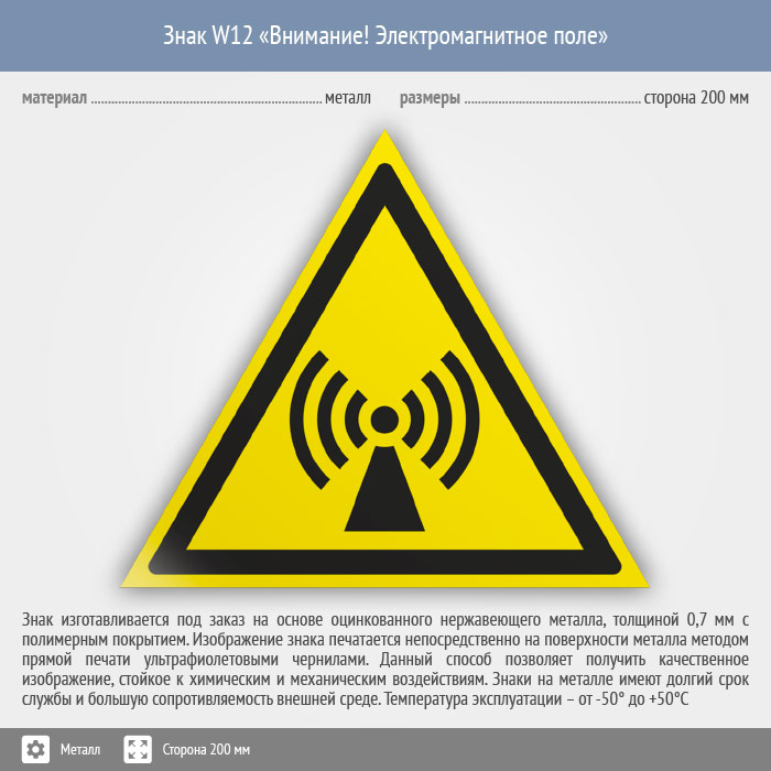 Знак W12 «Внимание! электромагнитное поле» (металл, сторона 200 мм) в Курске купить