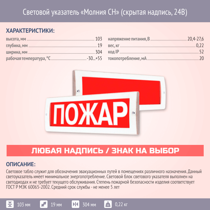 Световой указатель Молния СН (скрытая надпись, 24В) в Курске купить