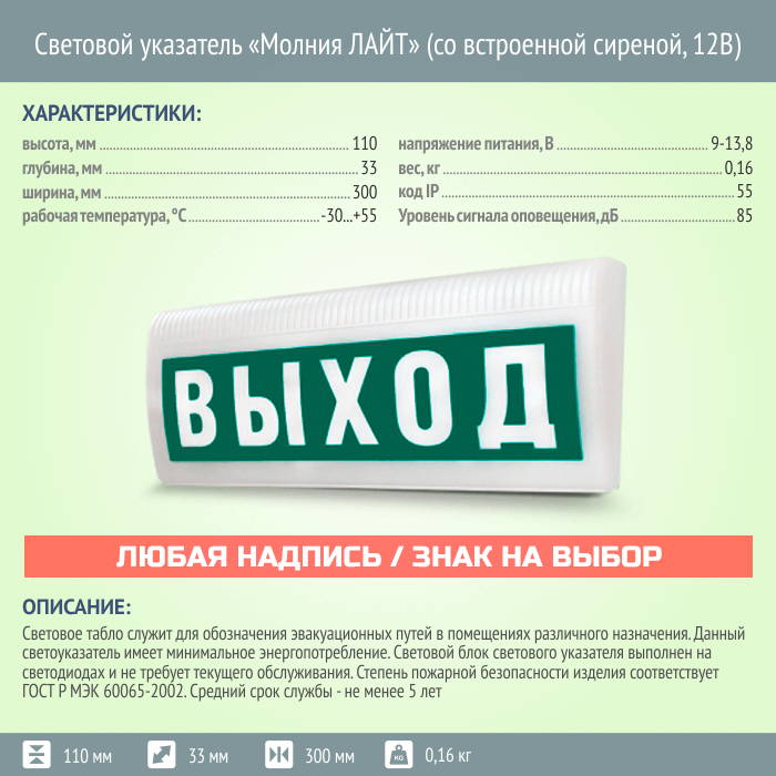 Световой указатель Молния ЛАЙТ (со встроенной сиреной, 12В) в Курске купить