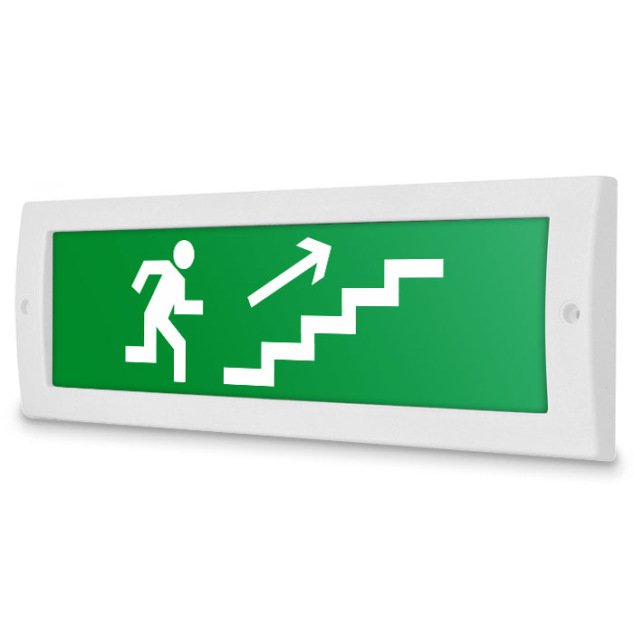 Световое табло «Направление к эвакуационному выходу по лестнице вверх (правосторонний)», Молния (12В) в Курске купить