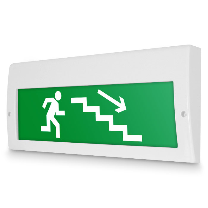 Световое табло «Направление к эвакуационному выходу по лестнице вниз (правосторонний)», Молния (220В РИП) в Курске купить