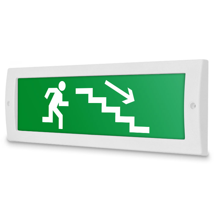 Световое табло «Направление к эвакуационному выходу по лестнице вниз (правосторонний)», Молния (12В) в Курске купить