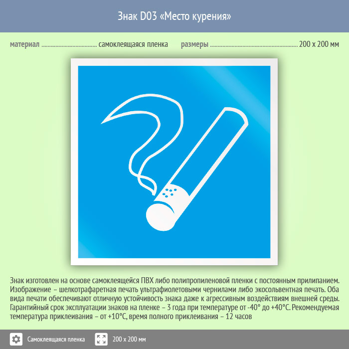Знак D03 «Место курения» (пленка, 200х200 мм) в Курске купить
