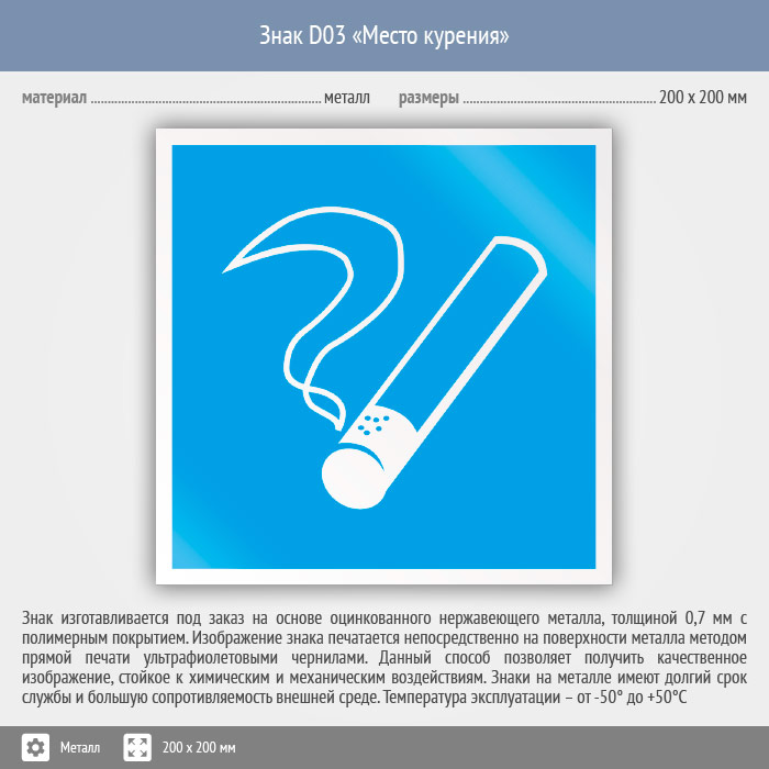 Знак D03 «Место курения» (металл, 200х200 мм) в Курске купить