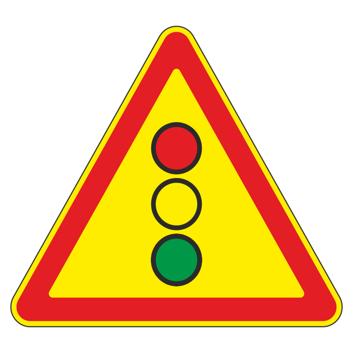 Дорожный знак 1.8 «Светофорное регулирование» (временный) (металл 0,8 мм, III типоразмер: сторона 1200 мм, С/О пленка: тип В алмазная) в Курске купить
