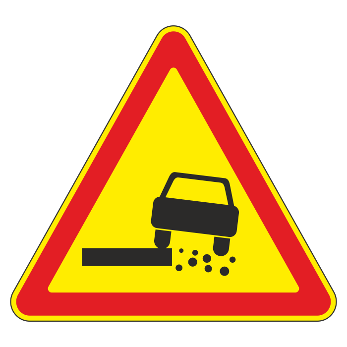 Дорожный знак 1.19 «Опасная обочина» (временный) (металл 0,8 мм, II типоразмер: сторона 900 мм, С/О пленка: тип А коммерческая) в Курске купить