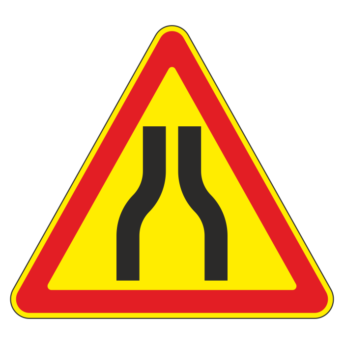Дорожный знак 1.20.1 «Сужение дороги» (временный) (металл 0,8 мм, IV типоразмер: сторона 1500 мм, С/О пленка: тип А коммерческая) в Курске купить