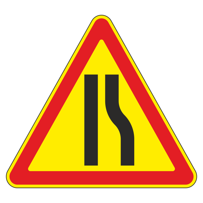 Дорожный знак 1.20.2 «Сужение дороги» (временный) (металл 0,8 мм, III типоразмер: сторона 1200 мм, С/О пленка: тип Б высокоинтенсивная) в Курске купить