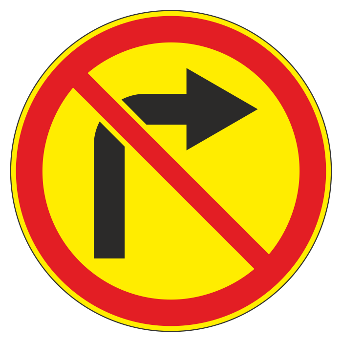 Дорожный знак 3.18.1 «Поворот направо запрещен» (временный) (металл 0,8 мм, I типоразмер: диаметр 600 мм, С/О пленка: тип Б высокоинтенсивная) в Курске купить