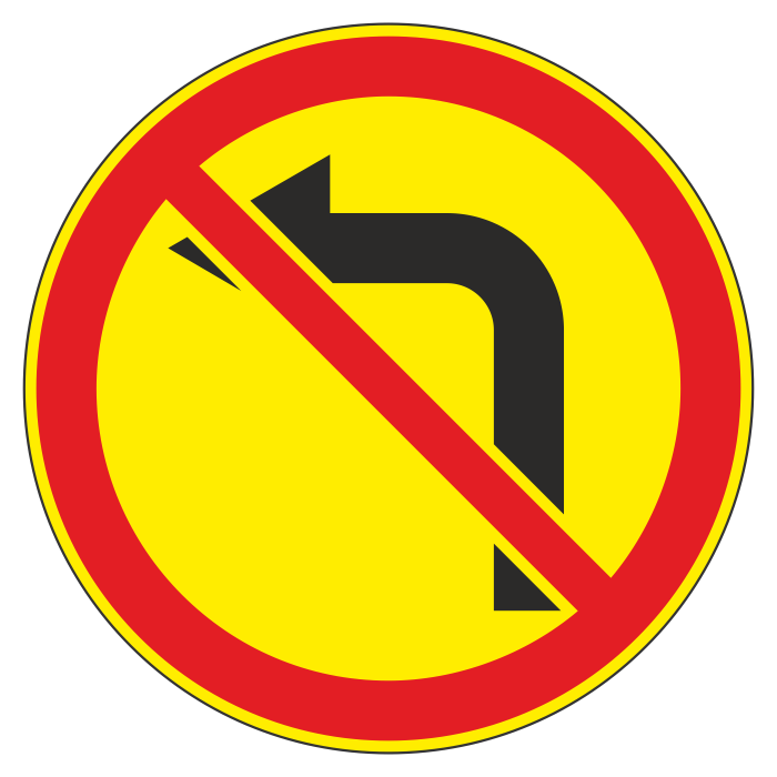 Дорожный знак 3.18.2 «Поворот налево запрещен» (временный) (металл 0,8 мм, II типоразмер: диаметр 700 мм, С/О пленка: тип А коммерческая) в Курске купить