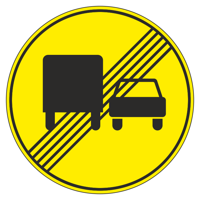 Дорожный знак 3.23 «Конец зоны запрещения обгона грузовым автомобилям» (временный) (металл 0,8 мм, II типоразмер: диаметр 700 мм, С/О пленка: тип Б высокоинтенсивная) в Курске купить