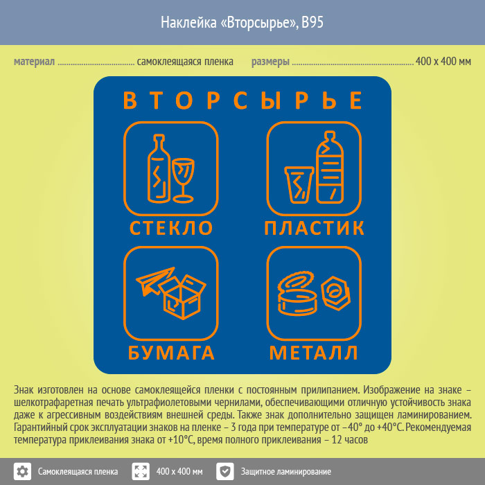 Наклейка на бак «Вторсырьё», B95 (пленка c ламинированием, 400х400 мм) в Курске купить