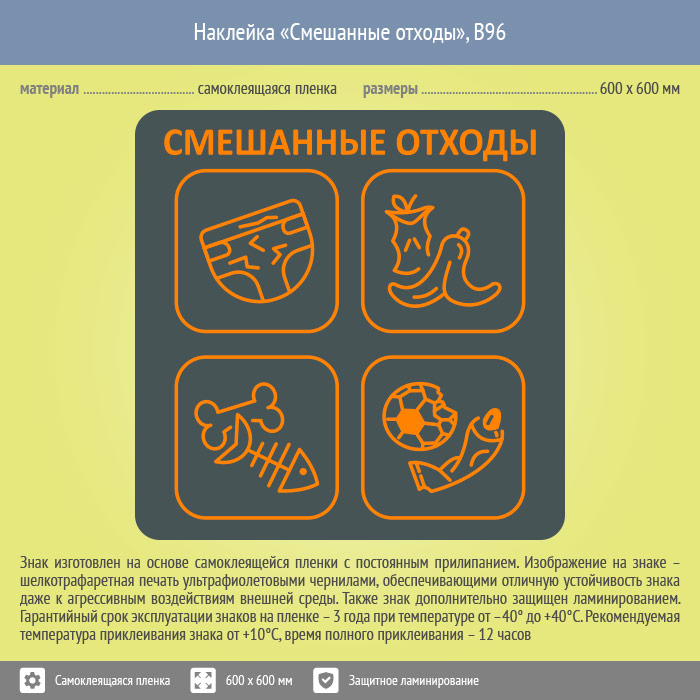Наклейка на бак «Смешанные отходы», B96 (пленка c ламинированием, 600х600 мм) в Курске купить