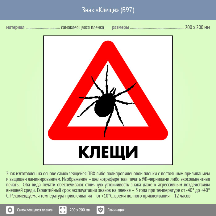 Знак «Клещи», B97 (пленка c ламинированием, 300х300 мм) в Курске купить